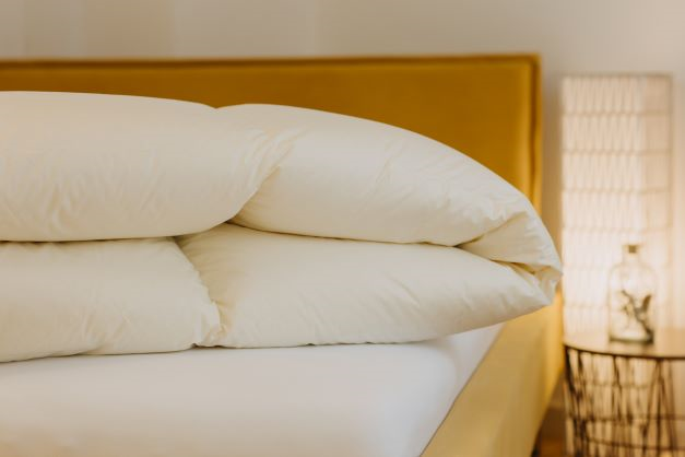 Für unsere Klassik-Betten verwenden wir halbweiße Daunen und Federn von silberweißen Weidegänsen.