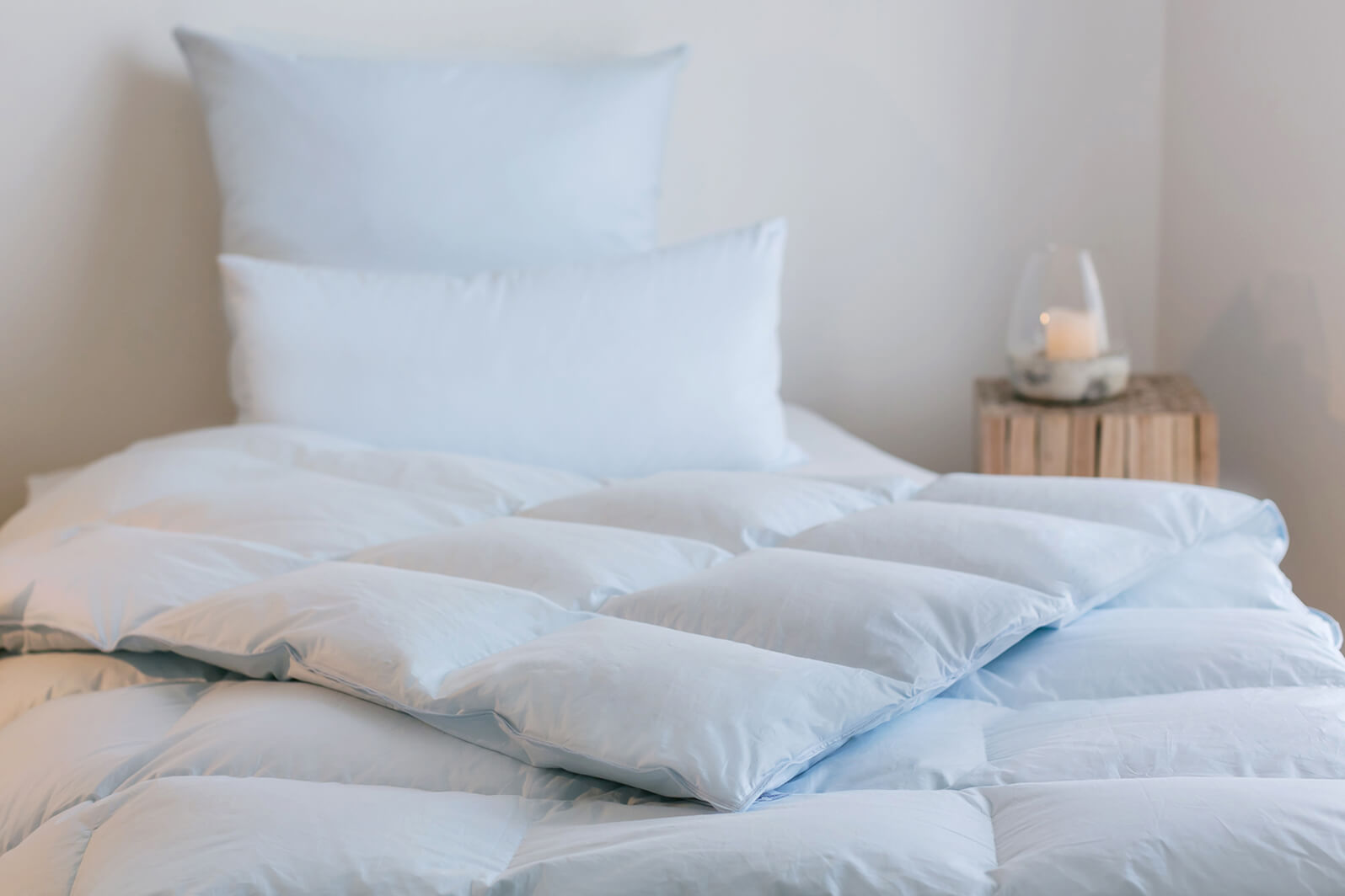 Unsere handgefertigten Daunenbetten sind atmungsaktiv, feuchtigkeitsregulierend und temperaturausgleichend.